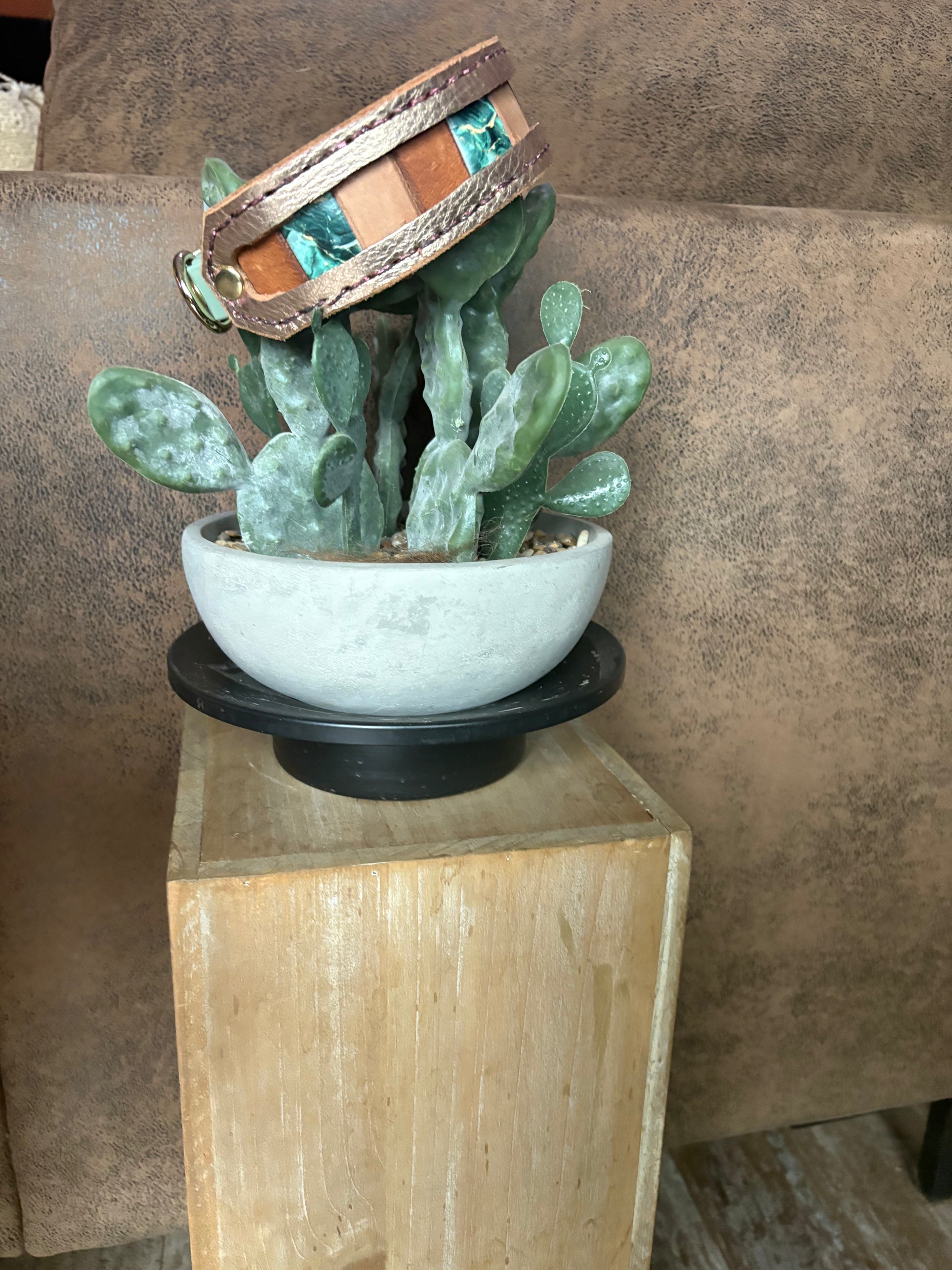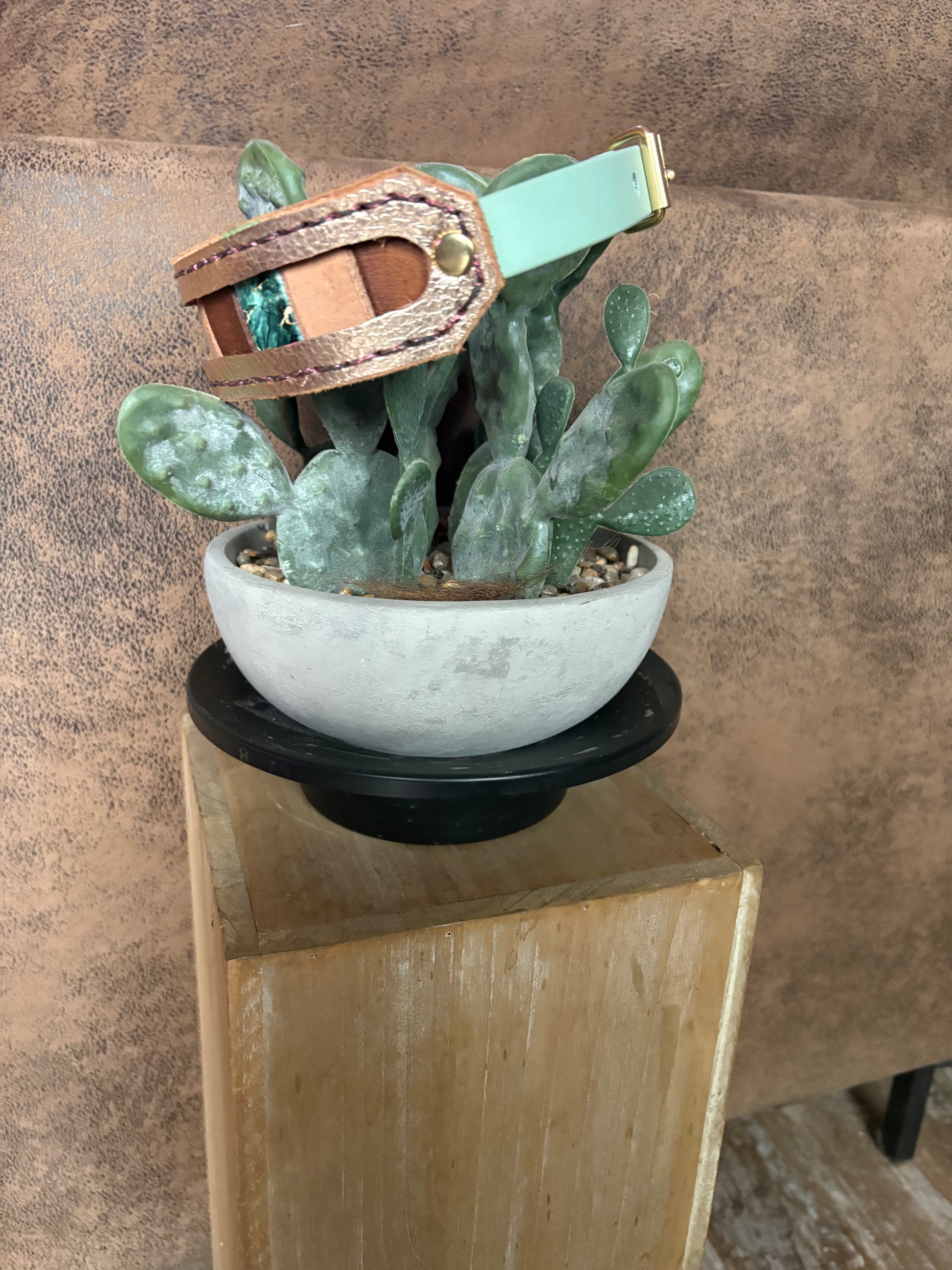 Dieses Halsband ist verstellbar und besteht aus einem Materialmix. Sowohl Leder als auch Biothane wurden hier verwendet. Es wirkt mystisch und edel.